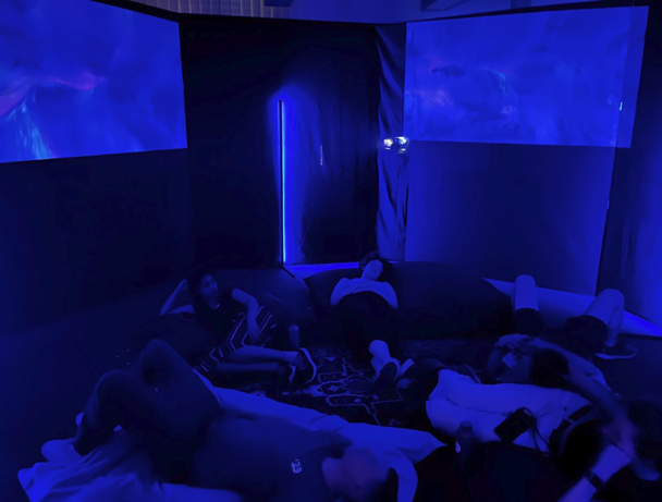Somnosphere is an installation that makes the deeply personal experience of sleep accessible through a dynamic audiovisual environment. While sleep is typically a solitary and incommunicable state, Somnosphere asks a provocative question: What does it mean to be together while unconscious?